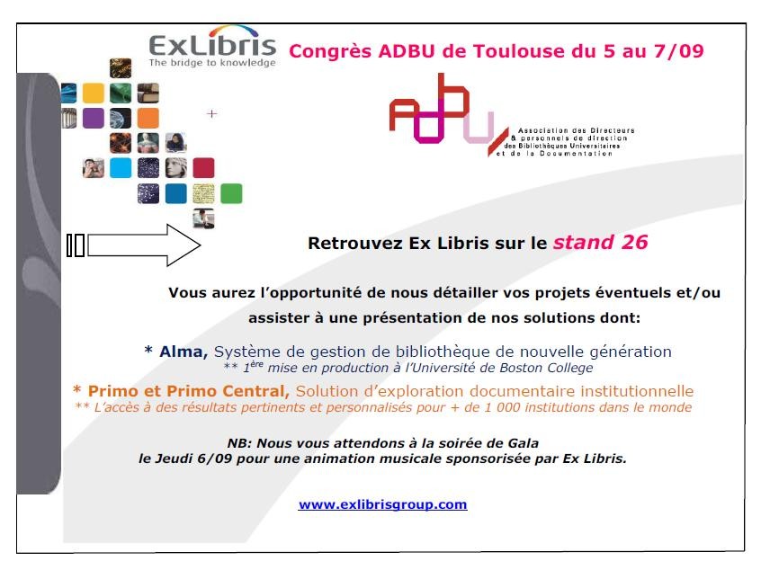 Présence d’Ex Libris au congrès ADBU de Toulouse (septembre 2012)